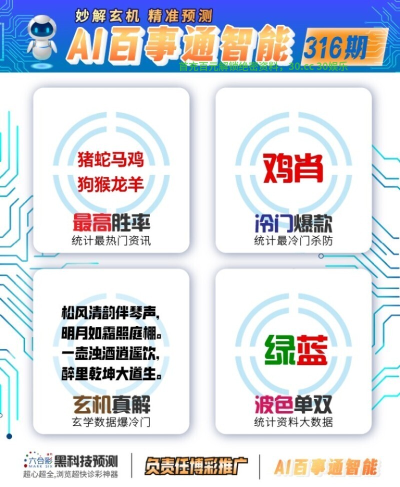 316期:AI百事通 诗:松风清韵伴琴声,明月如霜照庭棚。一壶浊酒逍遥饮,醉里乾坤大道生。 玄机真解:松风清韵伴琴声,明月如霜照庭棚。一壶浊酒逍遥饮,醉里乾坤大道生。解羊马兔鸡龙狗 爆款六肖:羊马兔鸡龙狗 爆款⑩码:11.23.24.48.15.27.21.45.26.38 |
